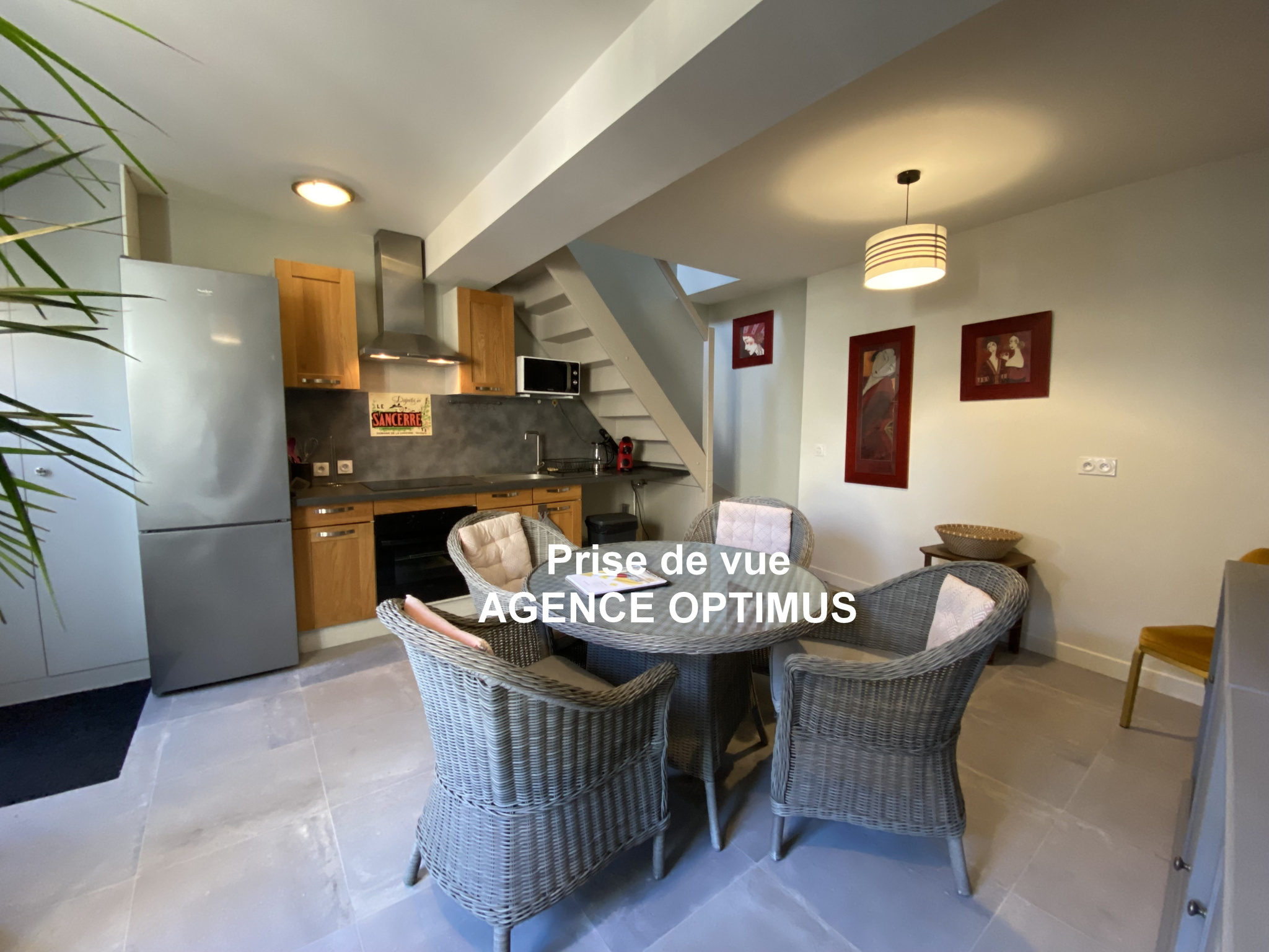 - Salle à manger meublée avec table en osier et ses 4 fauteuils en osier, idéale pour des repas conviviaux,
