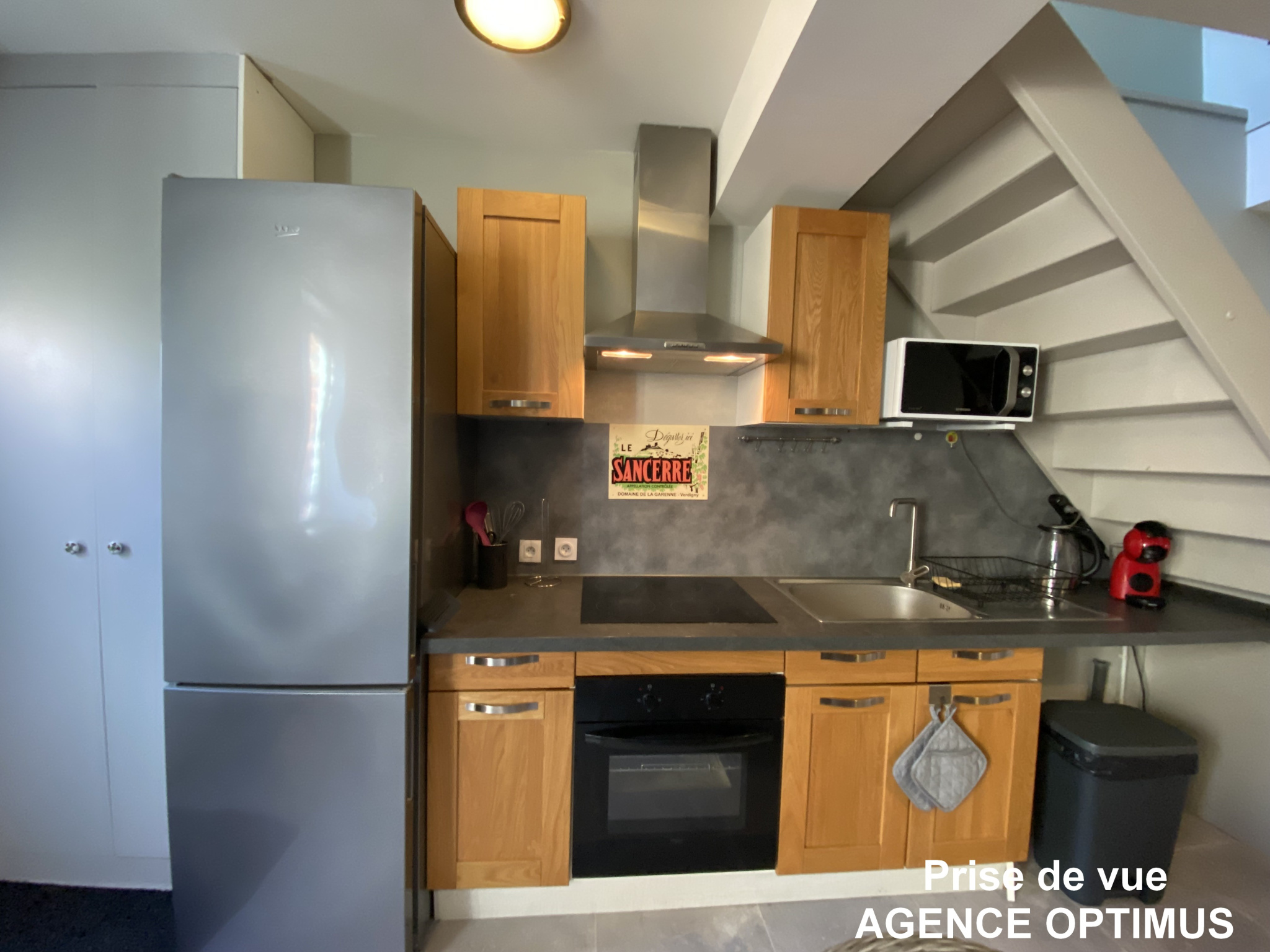 - Cuisine aménagée et entièrement équipée : électroménager complet (plaque de cuisson, hotte, four électrique, réfrigérateur, lave-vaisselle, machine à café, micro-ondes, bouilloire), vaisselle, ustensiles, batterie de cuisine, couverts inclus,
