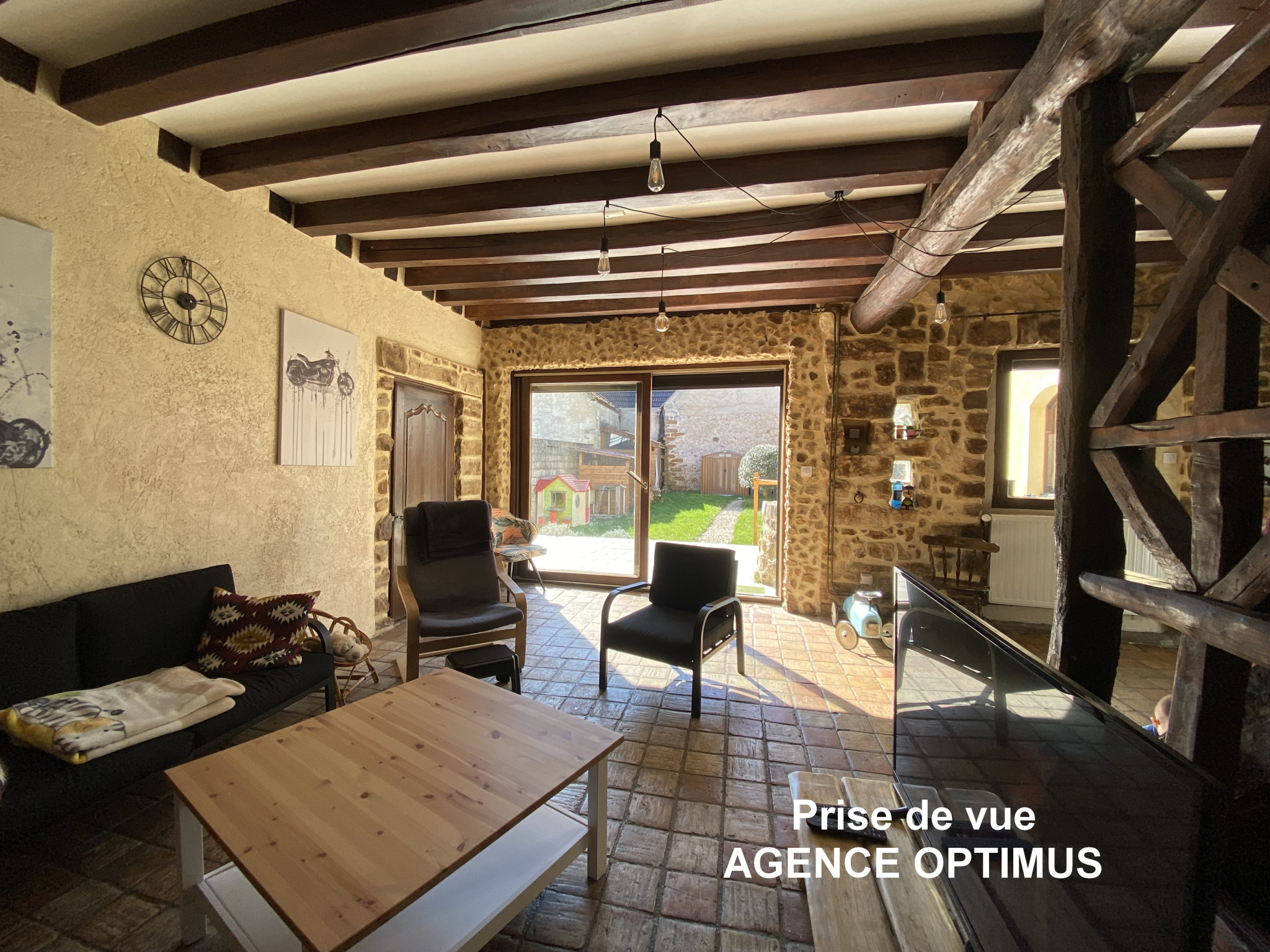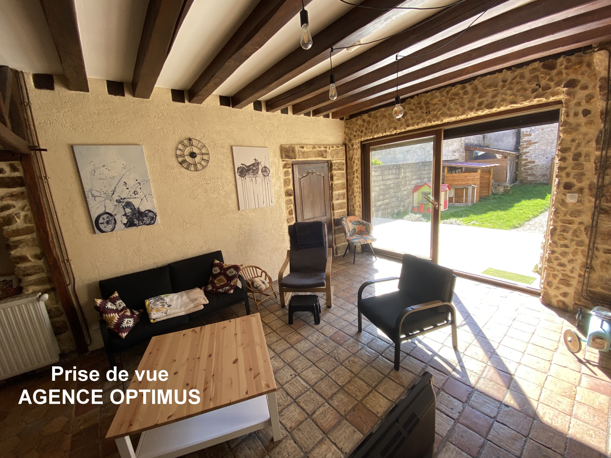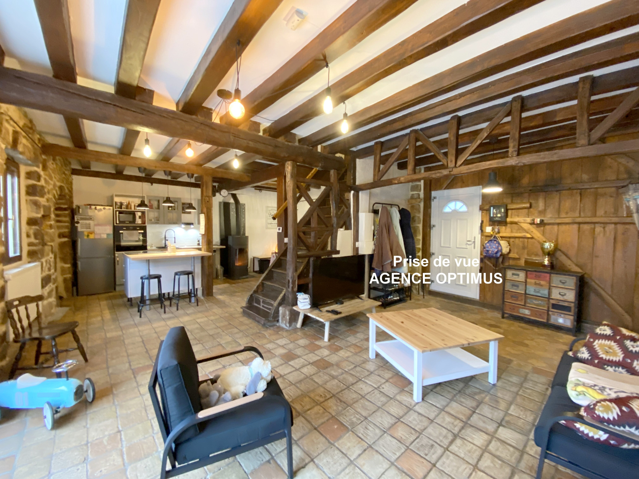 - Belle pièce de vie de 50m² cuisine aménagée ouverte sur séjour avec poêle à bois,