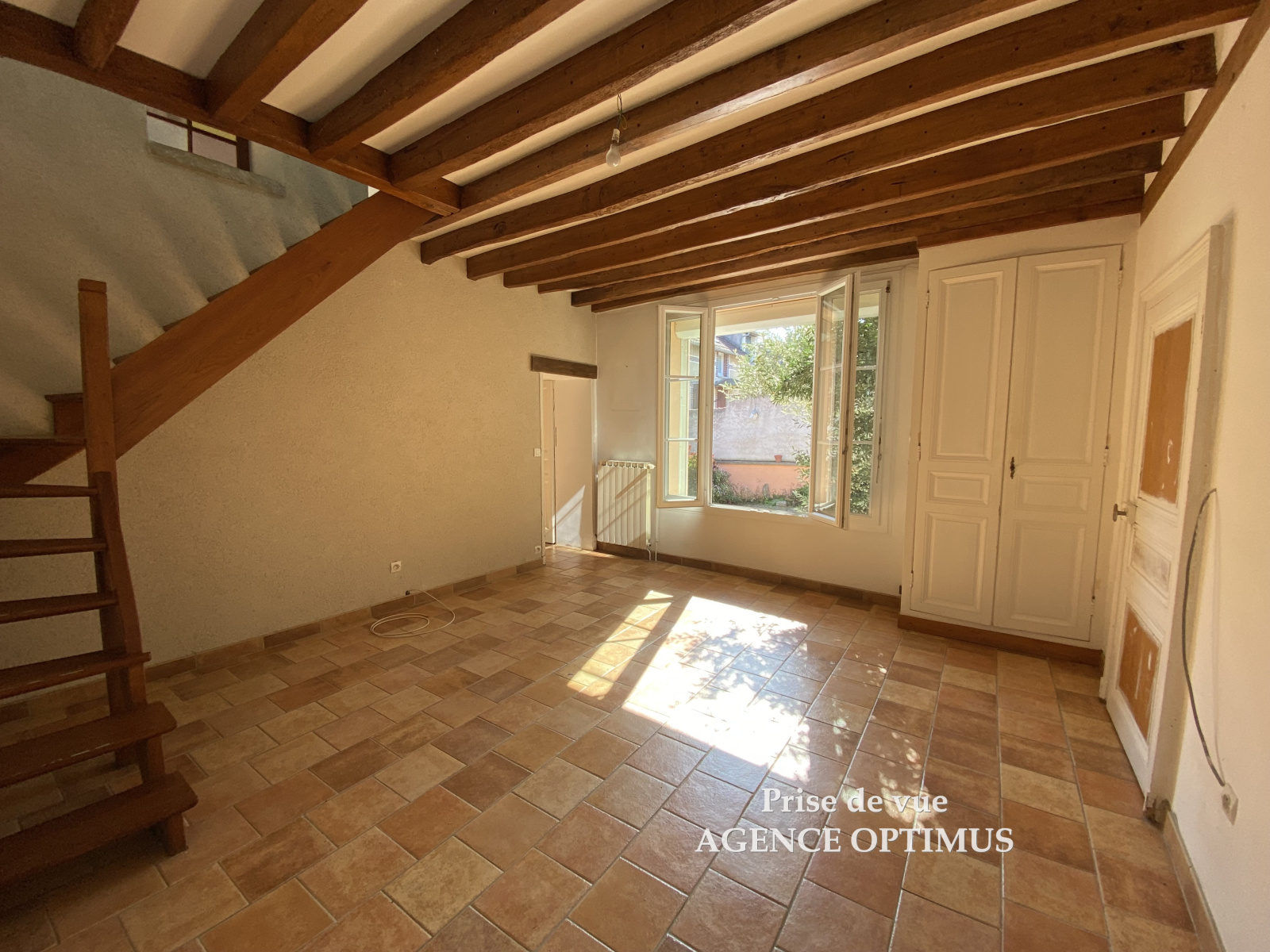 - Séjour chaleureux avec poutres apparentes + salon ou chambre avec cheminée et parquet en chêne,