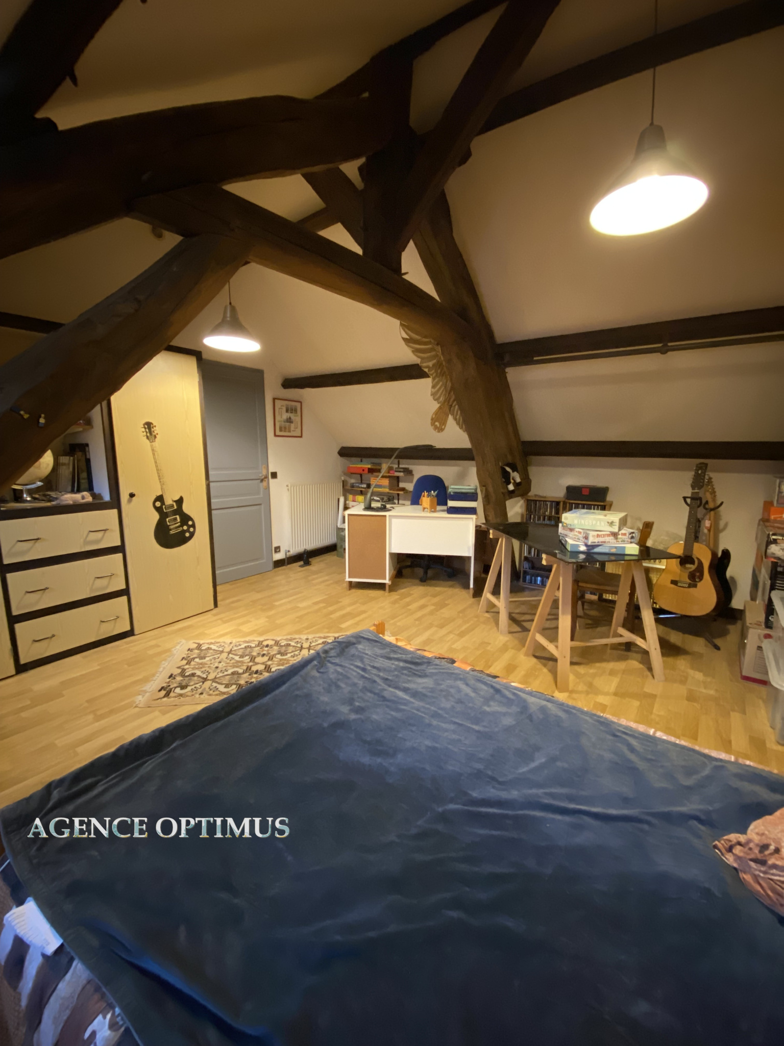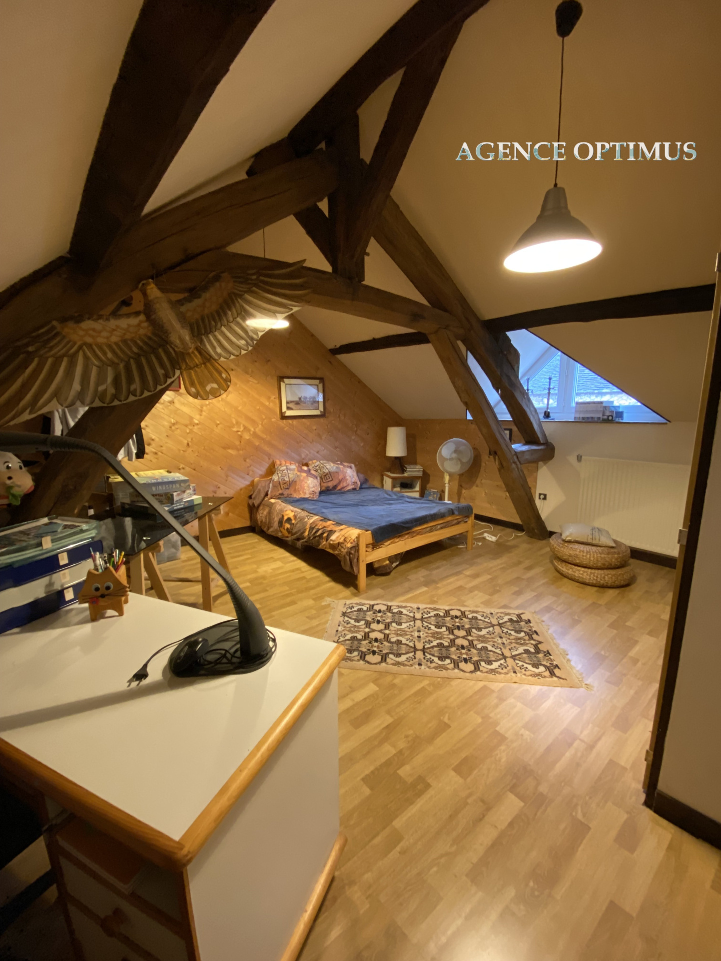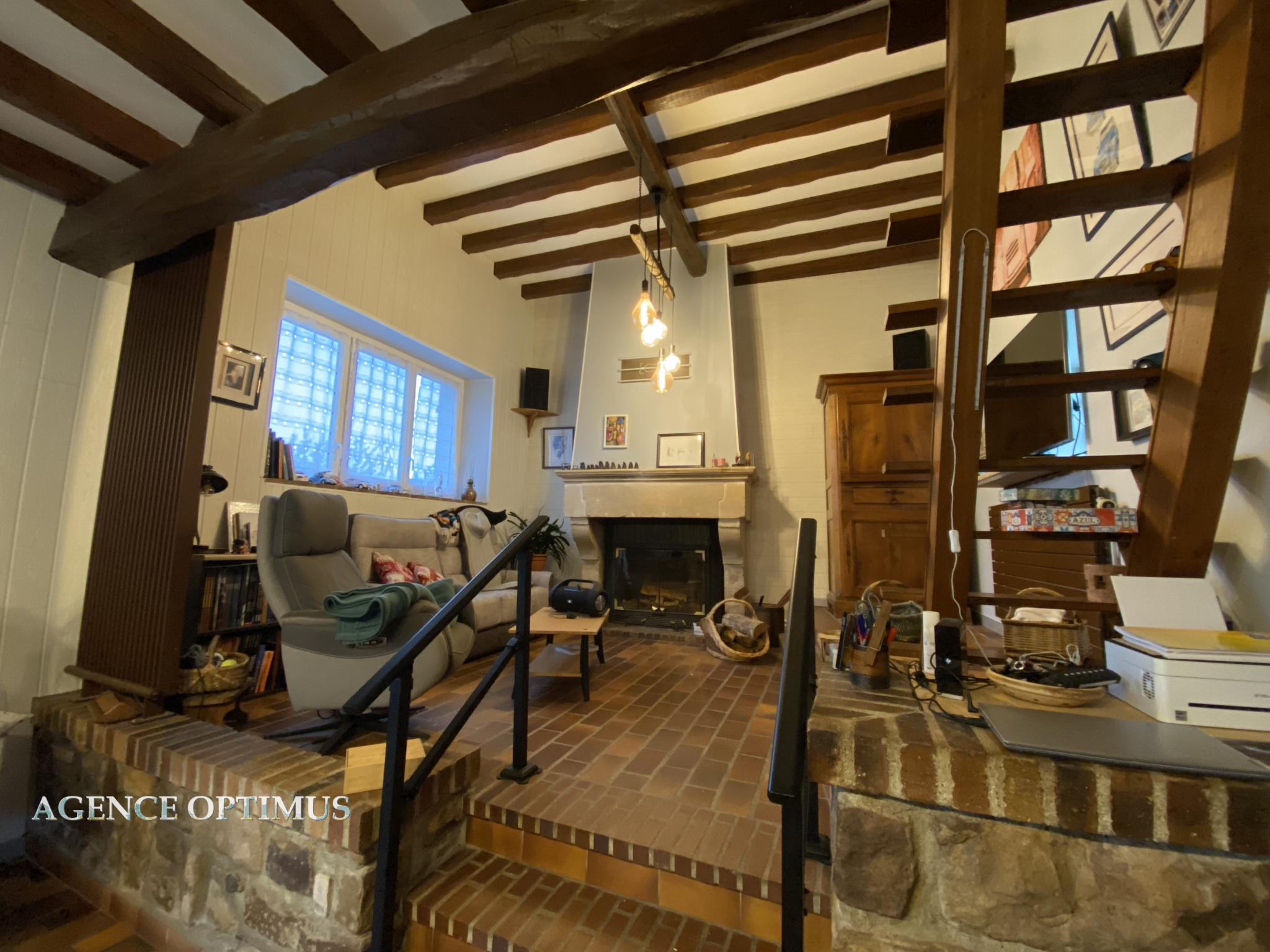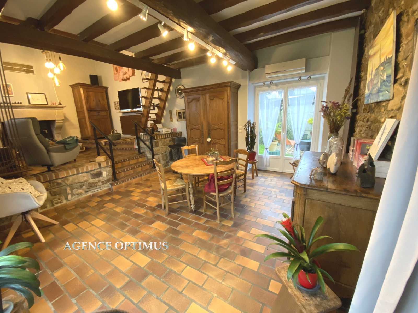 Dès l'entrée, le charme opère : poutres, cheminée, hauteur cathédrale, mezzanine...