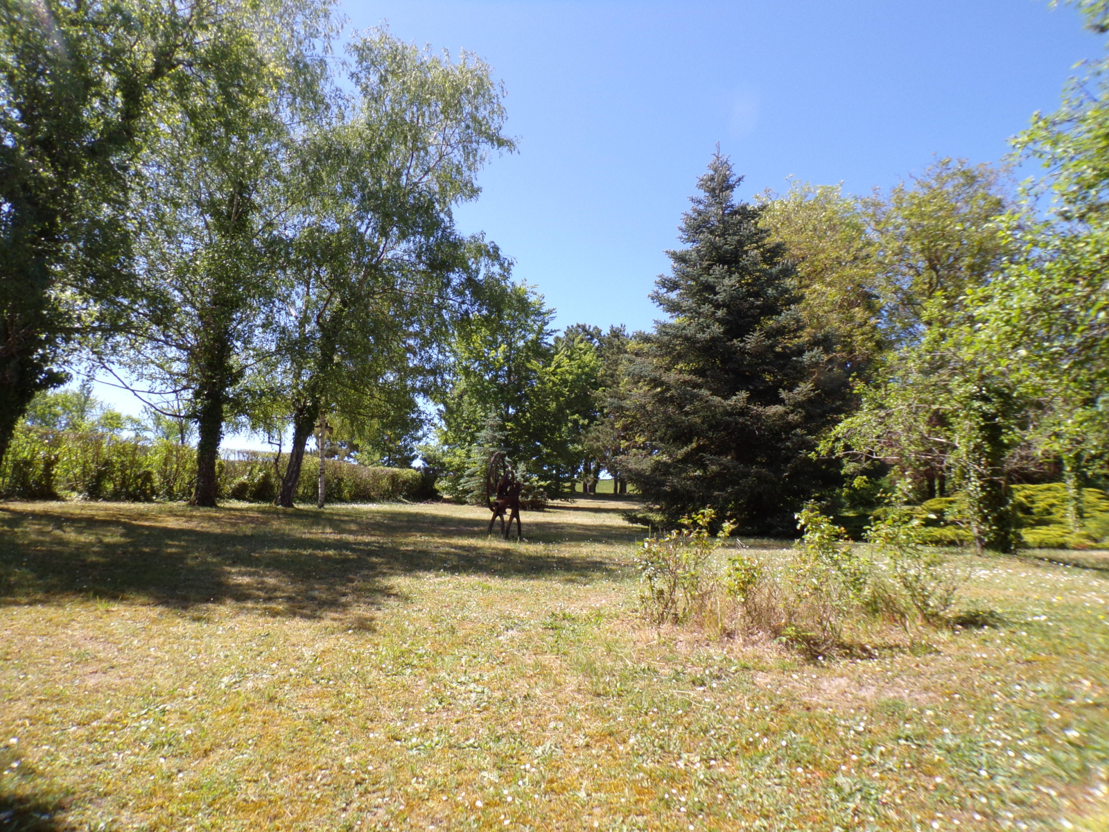 En extérieur, un grand terrain spacieux permettant d'aménager différentes zones de loisirs, comme un espace de jeu et un potager.